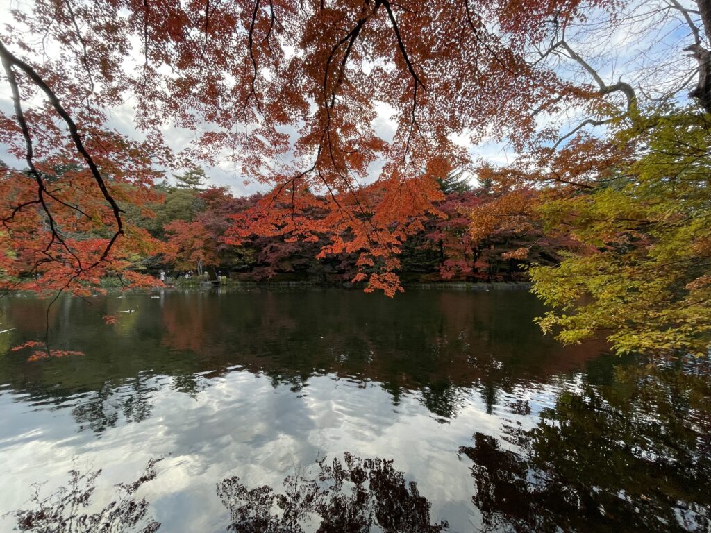 池の周囲は歩けるようになっているので、紅葉を楽しみながら散歩することにした。