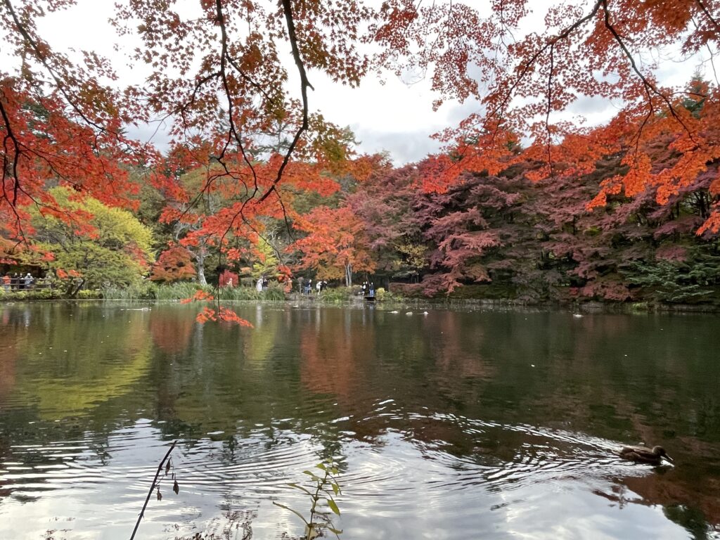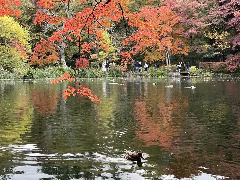 紅葉がとても綺麗で秋を感じられる。