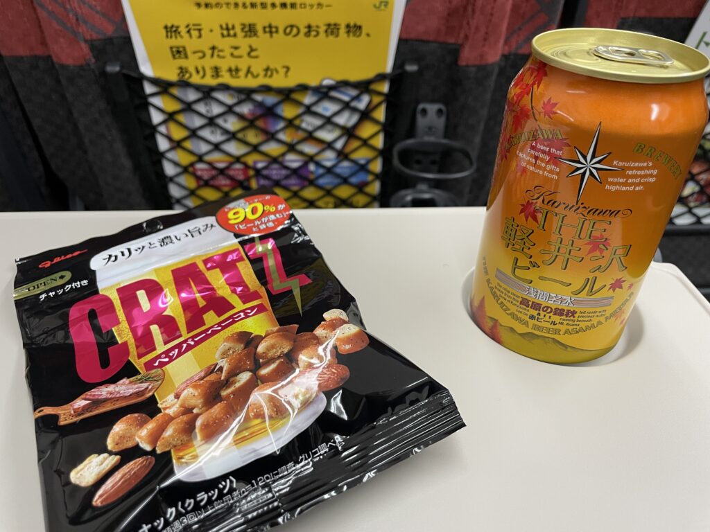 最後にアウトレット内にあるコンビニで軽井沢ビールとおつまみを買って、新幹線に乗った。