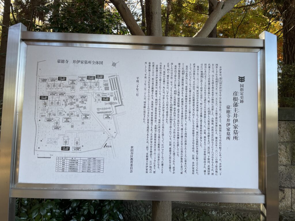美しい紅葉に癒されながら歩いていると、「井伊直弼の墓」までたどり着いた。